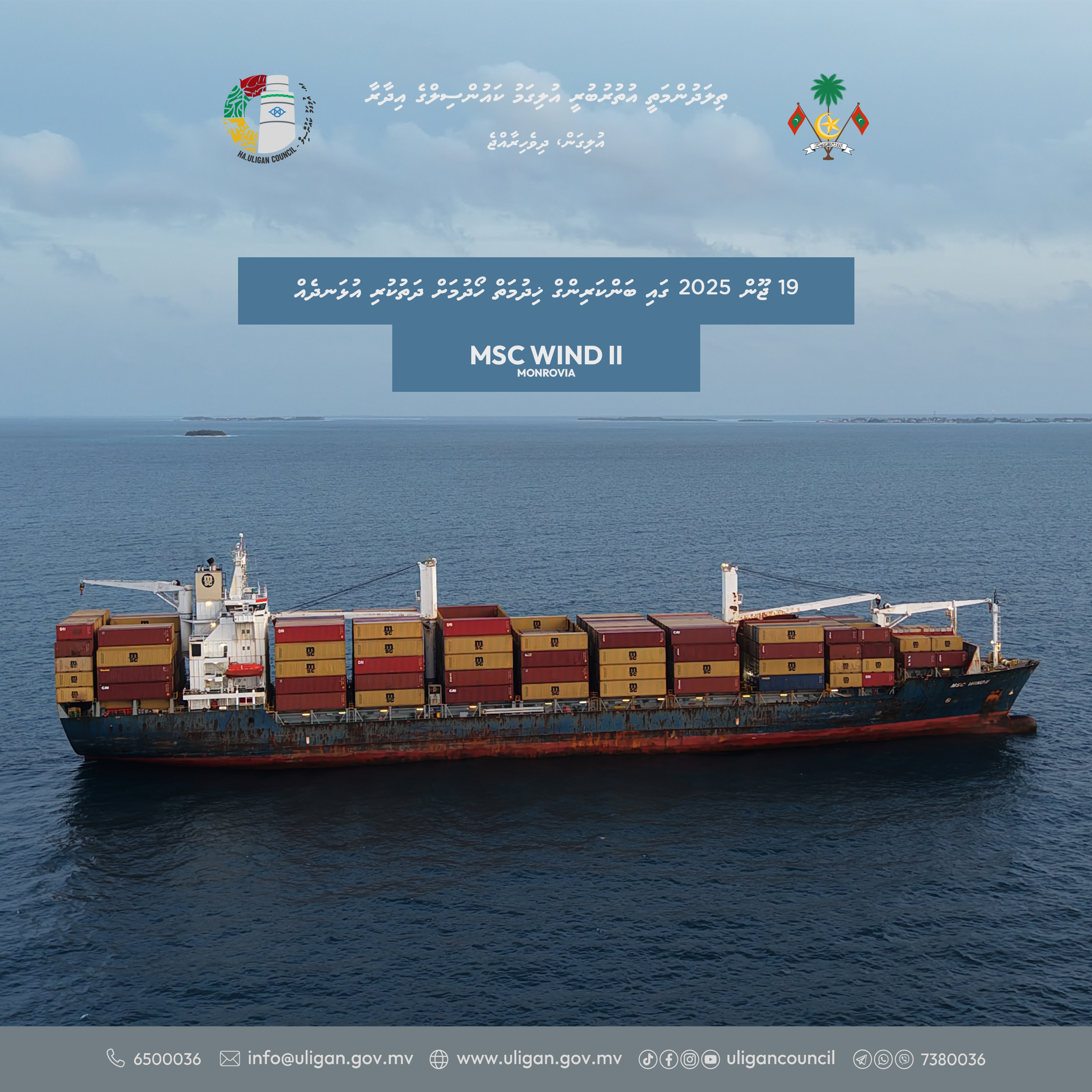19 ޖޫން 2025 ގައި ބަންކަރިންގް ޚިދުމަތް ހޯދުމަށް ދަތުރުކުރި MSC WIND II